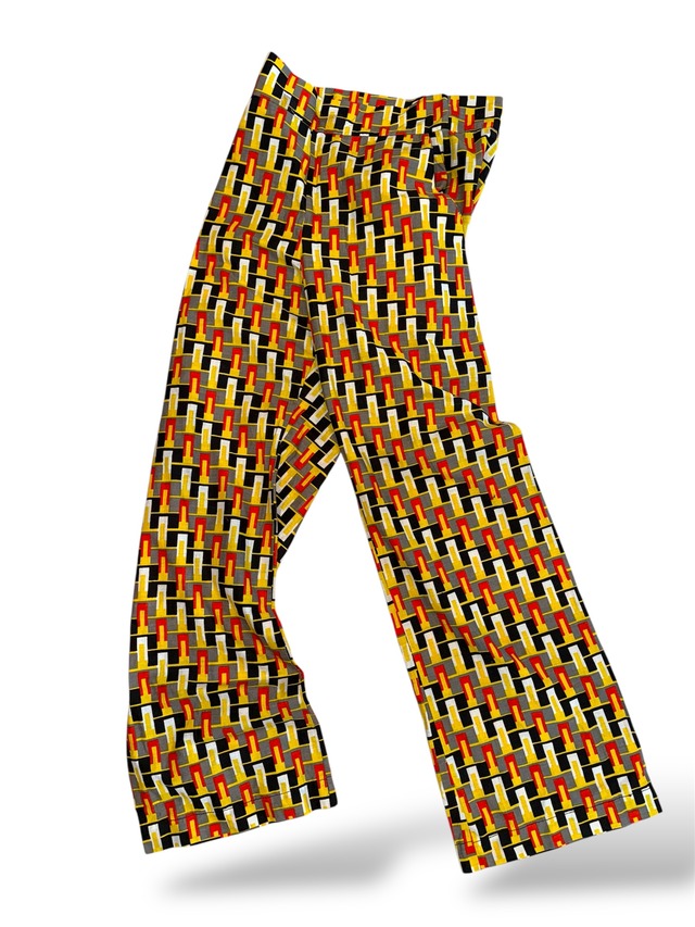 変わった柄のパンツです ジップはサイドに星でついてます 蝋燭柄?これぞまさに古着って感じがします ウエスト35.5 股上36 股下79 ワタリ32.5 裾幅26